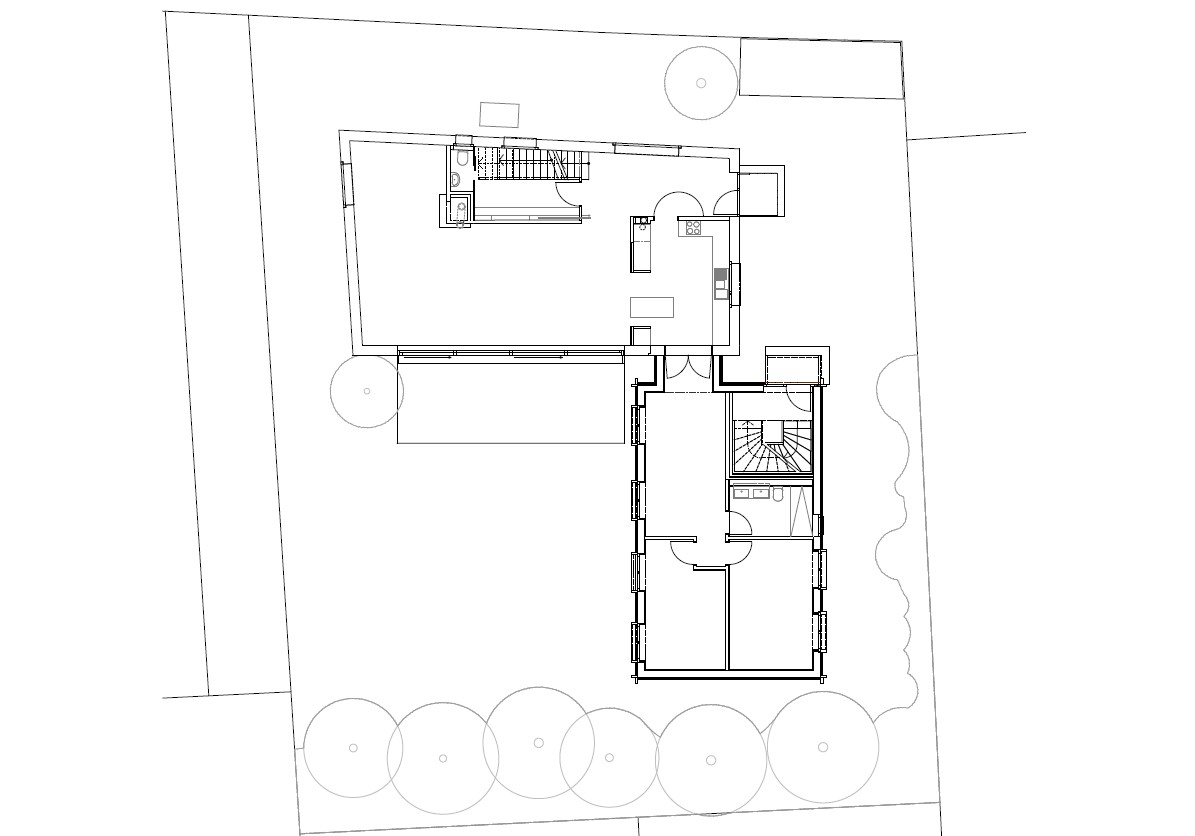 Der diagonale Blickbezug zwischen den beiden Hausteilen erzeugt ein Gefühl der räumlichen Grosszügigkeit. Der Anbau – Architekt Selva spricht von «der kleinen Schwester» – schafft eine neue, räumlich gefasste Gartensituation. Das Thema der historischen, gemauerten und strassenbegleitenden Häuser mit den gartenseitigen Holzscheunen findet eine stimmungsvolle, zeitgenössische Interpretation. Von einer ausgeklügelten Dialektik von Früh- und Spätwerk zu sprechen, wäre vielleicht vermessen. Dennoch ist die Weiterentwicklung der architektonischen Themen bemerkenswert: Hier das massive Einsteinmauerwerk, dort der leichte Holzbau. Hier die komplette Unterkellerung, dort die Minimierung des Aushubs. Hier das mineralisch gedeckte Dach, dort die integrierte Photovoltaikanlage. Das Projekt leistet einen relevanten Beitrag zum zukunftsweisenden Umgang mit dem vermeintlichen Auslaufmodell des Einfamilienhauses. Bei aller Bescheidenheit und Zurückhaltung.
