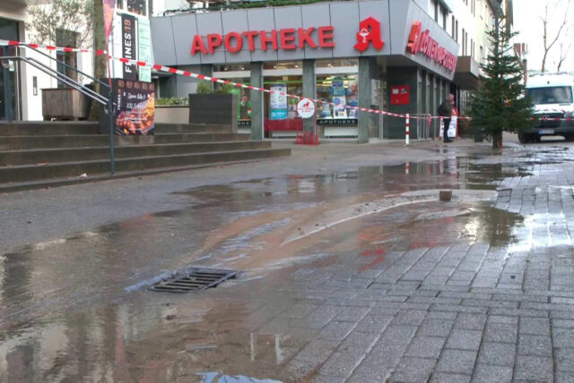 Wasser überspült Teile der Fußgängerzone