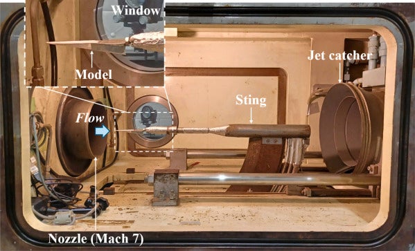 Der Versuchsaufbau im Windkanal. (Bild: Berthet & Suzuki, Universität Tokio)