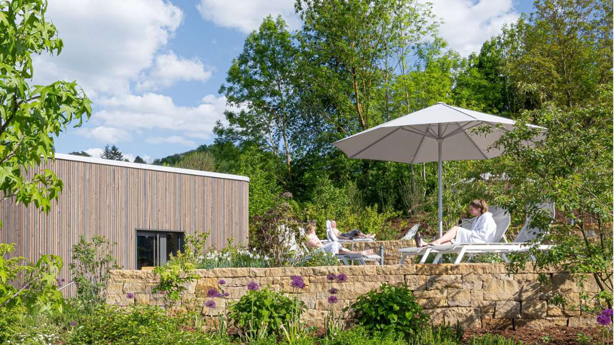 Wunnebad Winnenden: Modernisiertes Bad mit Weltrekordsauna Die Außensauna „Waldlichtung“ im Wunnebad. Foto: David Matthiesen / Wunnebad