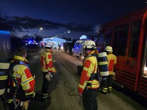 “Das Feuer konnte in der Lagerhalle rasch gelöscht und so größerer Schaden verhindert werden”, erläuterte er zum Einsatz der Feuerwehr. Gebrannt hatte ein Müllbehälter. Dieser wurde von den Einsatzkräften abgelöscht und ins Freie gebracht. Die angrenzenden Büroräume wurden mit einem Elektrolüfter mit Frischluft versorgt, um eingedrungenen Brandrauch zu entfernen.