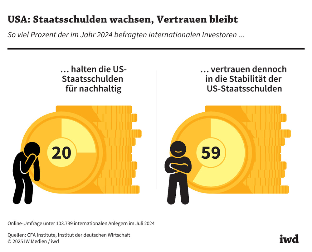 Obwohl nur 20 Prozent der 2024 befragten ausländischen Investoren das US-Defizit als nachhaltig einstufen, vertrauen 59 Prozent in die Stabilität der Staatsschulden der USA.