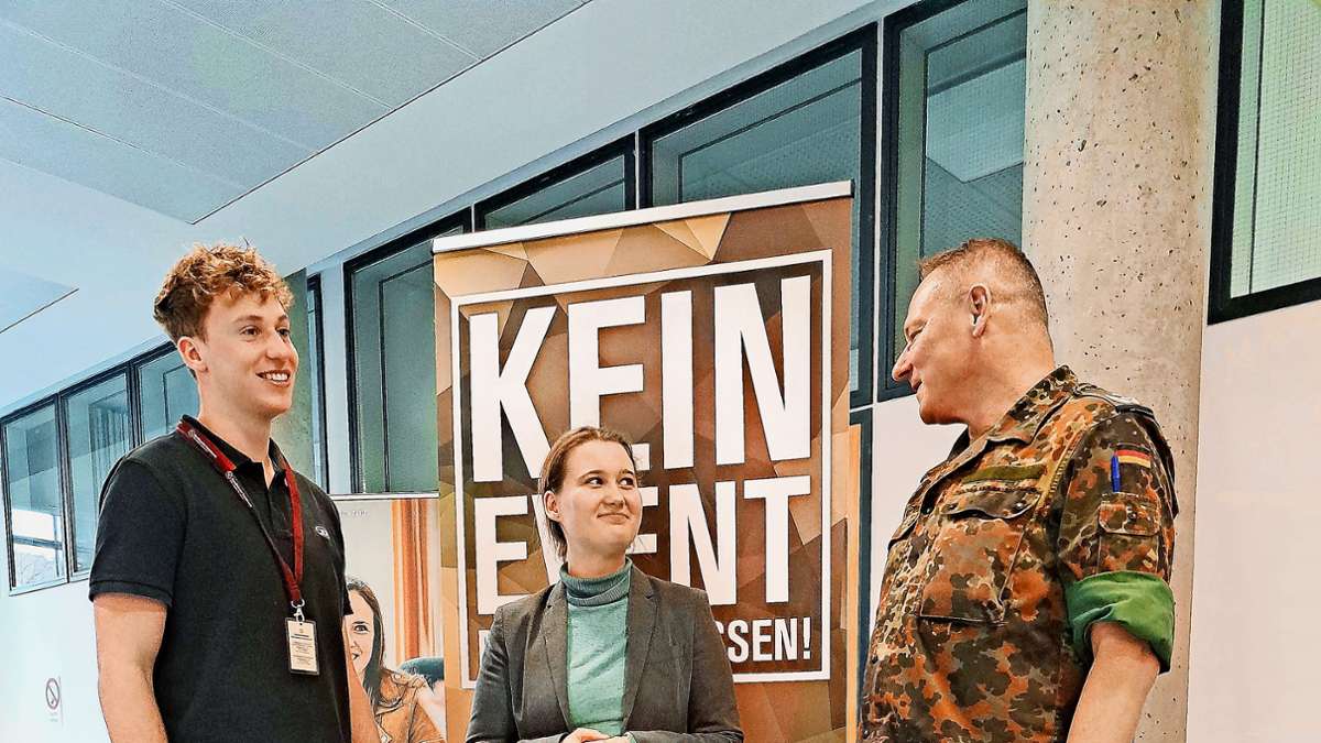 Oberstleutnant Thilo K. (rechts) mit den Freiwilligen Anna Krächter und Loïc Stürmer Foto: Gerlinde Wicke-Naber