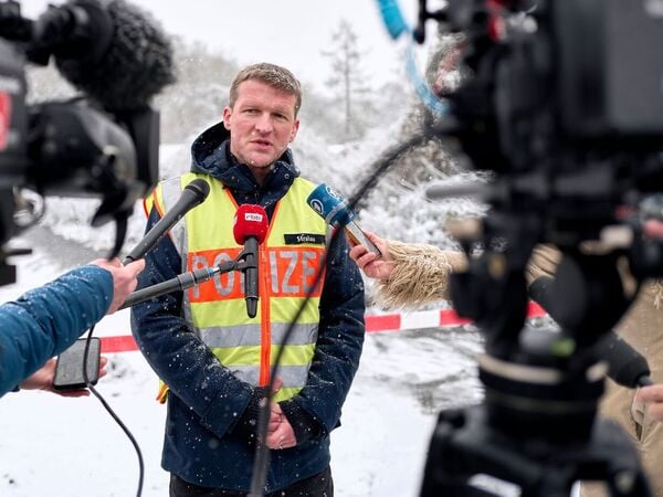 Ein Sprecher der Berliner Polizei informiert über den Brand an der Kabelbrücke, der zum großen Stromausfall geführt hat.