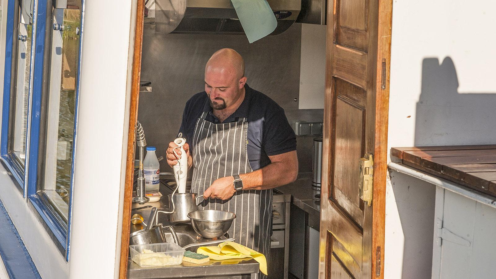 Der britische Koch Joss zaubert in seiner winzigen Kombüse Hochgenüsse – von leichten Lunches bis zum fünfgängigen Captain’s Dinner.