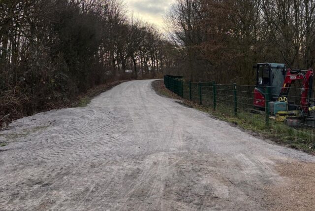 Die Emschergenossenschaft hat den Betriebs- und Radweg am Regenrückhaltebecker in Scharnhorst saniert. © Andreas Rieck