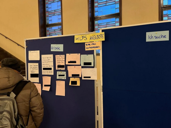 Eine analoge Tauschbörse hat sich an Pinnwänden im Rathaus Zehlendorf, Kirchstraße 1-3, entwickelt: Unter „Ich biete“ und „Ich suche“ können hier private Hilfen vermittelt werden. Auf den Zetteln bieten zahlreiche Menschen Schlafplätze und dazugehörige Kontaktmöglichkeiten an. Es werden warme Zimmer oder sogar ganze Wohnungen in Lichterfelde, Spandau oder dem Bergmannkiez angeboten. Andere erklären sich bereit, warme Mahlzeiten zu kochen oder Fahrdienste zu übernehmen.