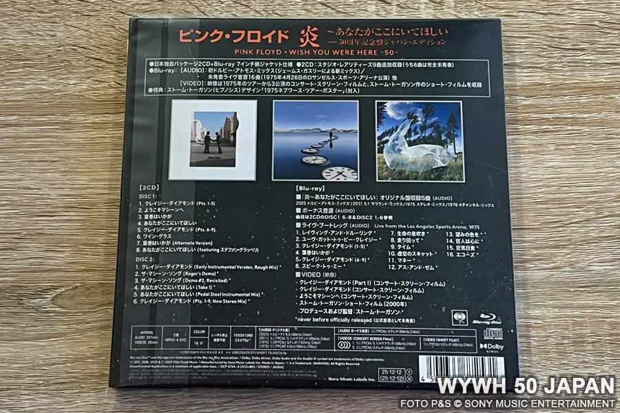 Sony Music Japan feiert wie gewohnt mit einem Sondermodell! Anlässlich des 50-jährigen Jubiläums von „Wish You Were Here“, kommt das 2CD + Blu-ray-Set in einer 7-Zoll-Papierhülle raus, exklusiv in Japan, versteht sich.