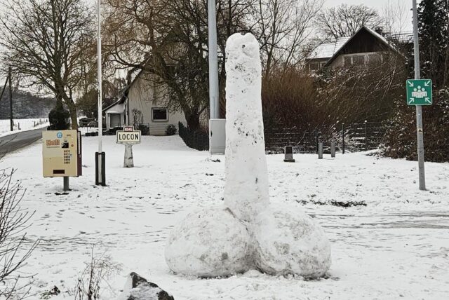 Unbekannte haben in Menden wieder einen großen Schnee-Penis gebaut. © privat