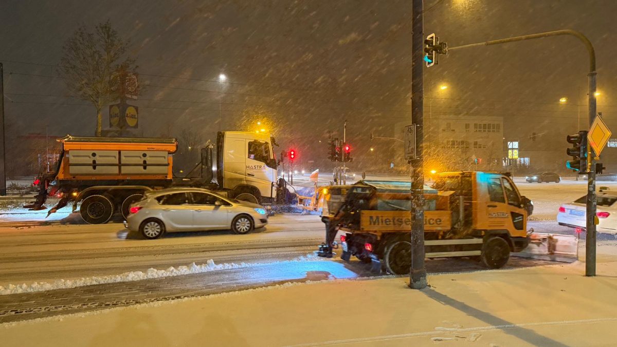 5.25 Uhr: Stadtwirtschaft und HASTRA sind mit mehreren Räumfahrzeugen unterwegs