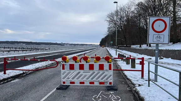 Spazierengehen bei „Wind und Wetter“ direkt an der Förde der Landeshauptstadt ist nicht mehr möglich. Teile der Kiellinie wurden nach Angaben der Stadt gesperrt: „Grund ist eine zu erwartende Hochwasserlage in Verbindung mit frostigen Temperaturen und der daraus resultierenden Glatteisgefahr.“ In der Kieler Bucht soll der Wasserstand bis 1,15 über Normalnullhöhe steigen. Das sagt das Bundesamt für Seeschifffahrt und Hydrographie.
