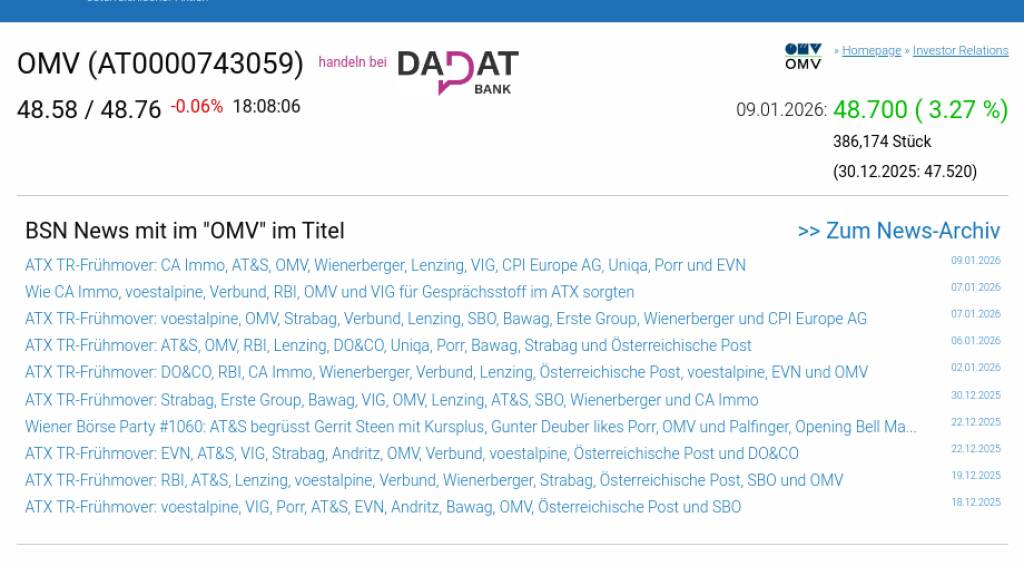 OMV am 9.1. 3,27%, Volumen 122% normaler Tage
