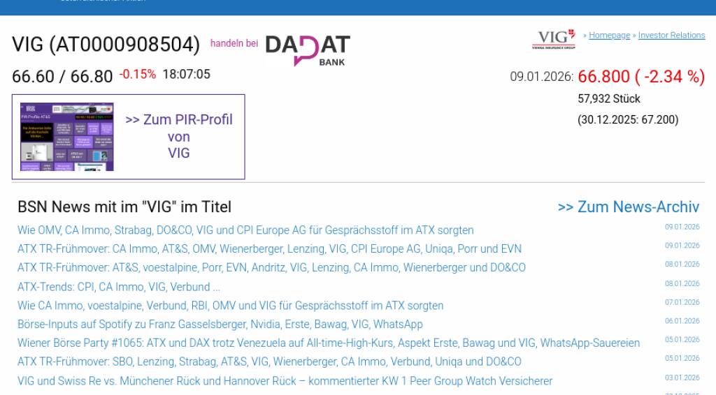 VIG am 9.1. -2,34%, Volumen 120% normaler Tage