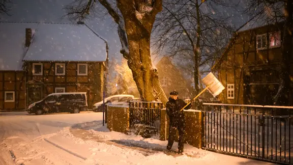 Vorbildlich schippt dieser Anwohner vor seinem Haus in der Region Hannover Schnee.