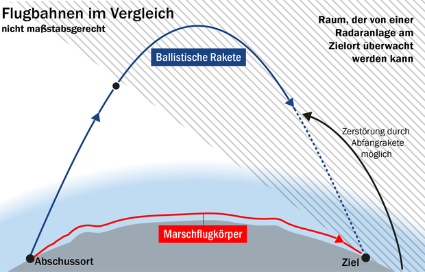 - Marschflugkörper fliegen niedriger und sind damit schwieriger vom Radar zu erfassen.