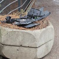 Denn jetzt stehen die Betonkübel, verschoben durch den Aufprall, dekoriert mit den Überbleibseln des Unfalls, als Parcours für Fußgänger und Radfahrer mitten auf dem Bürgersteig und Radweg. Sogar der Zaun ist in Mitleidenschaft gezogen worden. Den Anwohnern wird angst und bange, denn die Grundschule Bohl ist nur 150 Meter entfernt von der gefährlichen Kurve, und dieser Bürgersteig gehört zum Schulweg der Grundschüler.