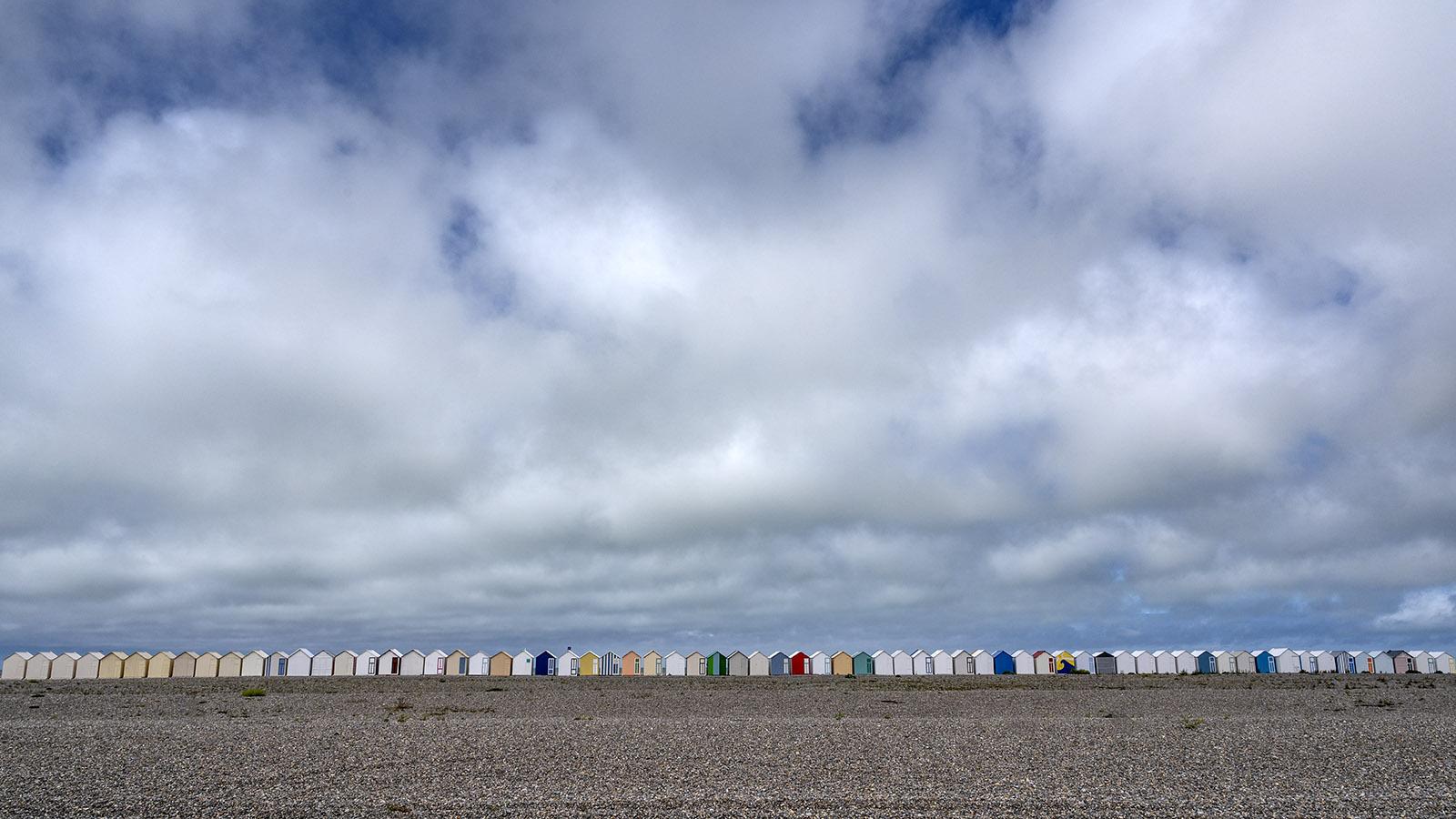 In Cayeux-sur-Mer beginnt die Somme-Bucht. Dort steht eine endlos lange Reihe von Strandkabinen auf groben Kieseln. Foto: Hilke Maunder