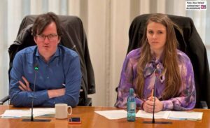 Das Führungsduo der Fraktion Grüne & Volt: Christoph Neumann und Katrin Lögering. Foto: Alex Völkel für Nordstadtblogger.de