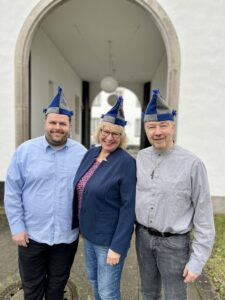 Die Initiatoren Oliver Kießig, Heike Kümpel und Sammy Wintersohl vom evangelischen Karnevalsnetzwerk „Blauköpp“ engagieren sich für eine fröhliche, glaubensnahe Präsenz der Kirche im Fastelovend.