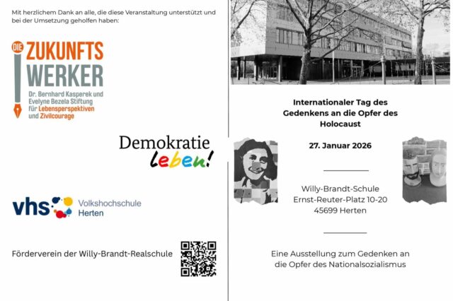 Mit diesem Flyer macht die Willy-Brandt-Schule auf ihre Ausstellung zum diesjährigen Gedenktag für die Opfer des Nationalsozialismus aufmerksam. © Website Förderverein WBS