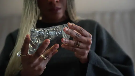 Trinkwasserbeutel aus Glas: Mit Skulpturen wie dieser beschäftigt sich Karimah Ashadu aktuell.
