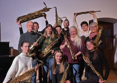 Das Saxophon-Ensemble der David Brand Saxophone Academy wurde 2023 gegründet und vereint Musikerinnen und Musiker zwischen 14 und 79 Jahren. Alle Saxophonfamilien – vom Bariton bis zum Sopran – sind vertreten und sorgen für ein facettenreiches Klangbild. Nach Auftritten bei der Fête de la Musique in Löbau 2023 und 2024 sowie verschiedenen Weihnachtskonzerten zeigt das Ensemble nun in Mittelherwigsdorf sein ganzes Repertoire: klassische Werke, Filmmusik, Swing und Pop – leidenschaftlich, vielseitig und mitreißend! Ein Abend voller Klangfarben und Begeisterung.