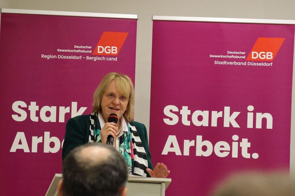 Die Düsseldorfer DGB-Chefin Sigrid Wolf begrüßte die Gäste