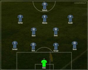 Personell schließt sich Christian dem weitestgehend an, würde jedoch Lukas Reich als rechten Verteidiger aufstellen. Im offensiven Mittelfeld ergeben sich jedoch positionelle Verschiebungen: Guttau links, Abiama zentral, Kozuki rechts!