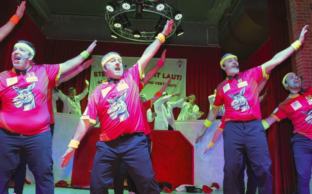 Wo wirft der Präsident sein Uniformjacke auf die Bühne und legt mitsamt anderen, ehrenwerten Herren einen solchen Tanz aufs Parketts, dass die fast 400 Gäste in der Wichernhalle frenetisch applaudieren? Na klar, so etwas gibt es nur in Unterbach, das immer noch seinen eigenen Bräuchen nachgeht. Am Samstagabend (31.1.) stand beim Karnevalsausschuß Unterbach von 1957 diese Tradition auf dem Programm: Bunter Abend.