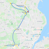 - nach ca. 500 Metern rechts abbiegen in die Olshausenstraße