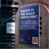 Du kannst das Awareness-Team, erkennbar an den lila Westen, jederzeit im Stadion ansprechen oder über das Einscannen der QR-Codes zu dir rufen. Schilder mit den entsprechenden QR-Codes findest du sowohl im Heim- als auch im Gästebereich, an den Blockaufgängen, Verkaufsständen und Toilettenkabinen.