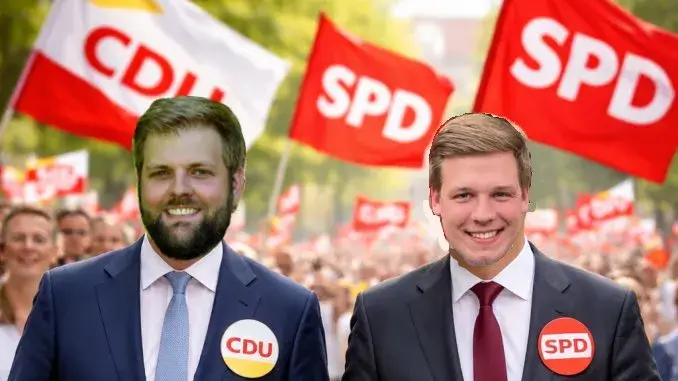 Dazwischen passt kein Blatt Papier. CDU und SPD gehen Hand in Hand. Montage: KI und NGZ