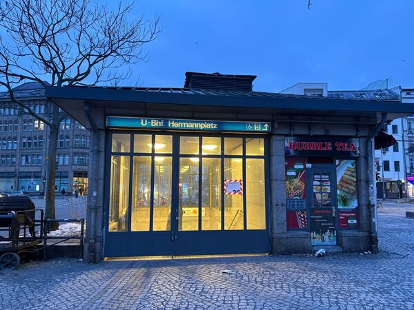 Normalerweise ist der Hermannplatz mit seinen zwei U-Bahn-Linien ein pulsierender Verkehrsknotenpunkt. Doch am Montagmorgen steht hier alles still, zumindest unter der Erde. Der sonst so wuselige Platz ist menschenleer. Die Eingänge zur U-Bahn sind versperrt, Schilder verkünden unmissverständlich: „STREIK!“.