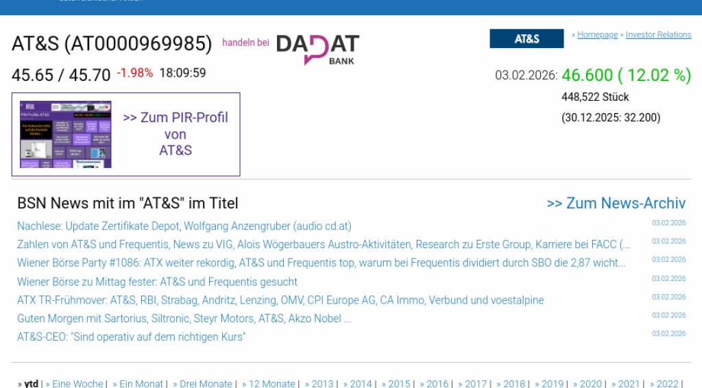 AT&S am 3.2. 12,02%, Volumen 304% normaler Tage