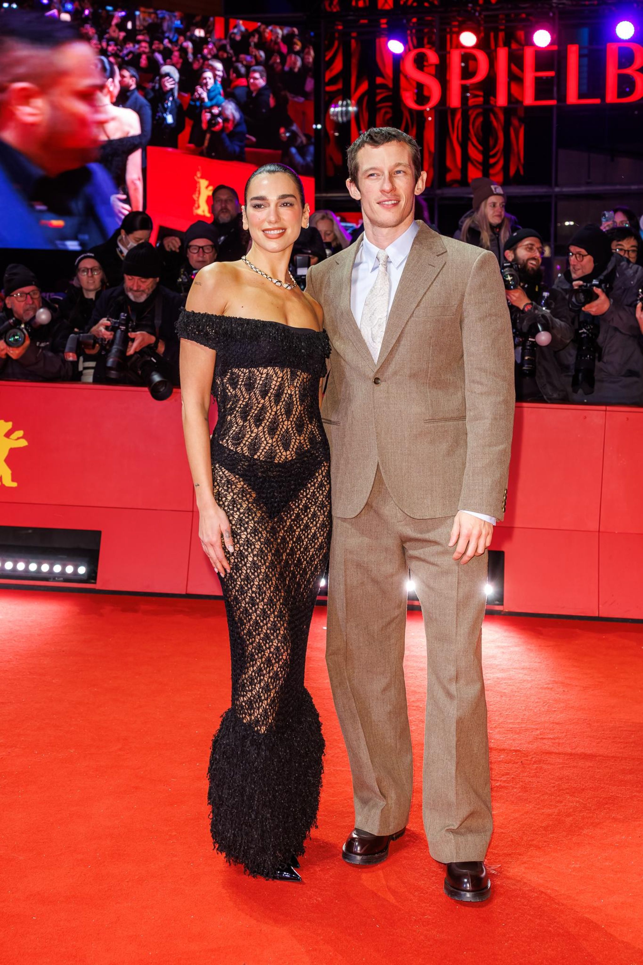 Überraschung! Im Rahmen der Berlinale lassen sich auch Dua Lipa und Callum Turner nicht lang bitten und posieren ausgiebig auf dem roten Teppich, der von Fotograf:innen umgeben ist. Dabei zeigen sie, dass es nicht immer ein Partnerlook sein muss, um Zugehörigkeit zu zeigen. Während sie sich eng aneinander schmiegen, glänzt er in einem klassischen Anzug, während sie im Naked-Dress in voller Blüte steht. Mehr