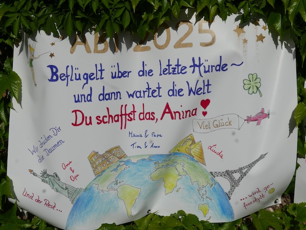 Eines der vielen Abi-Banner an der St. Angela-Schule in Königstein, Foto: Petra Kammann