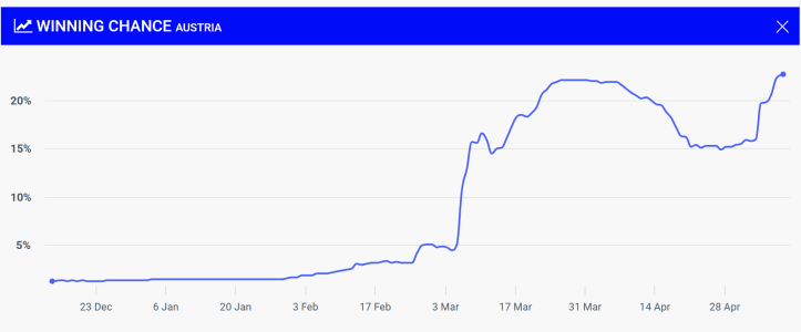 Wettquoten ESC 2025: Österreich, Stand 09.05.25
