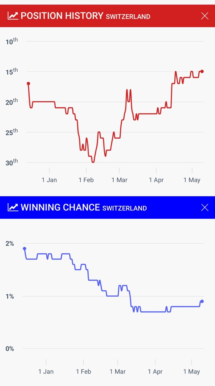 Wettquoten ESC 2025: Schweiz, Stand 09.05.25