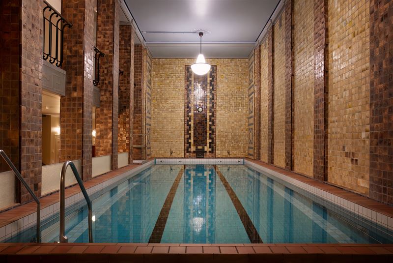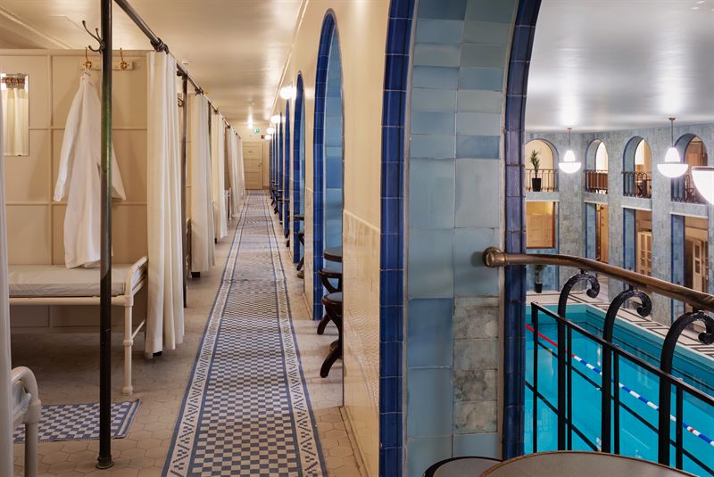 The two levels of the building offer contrasting but complementary experiences: the ground floor functions as a traditional swimming hall for exercise and laps, while the second floor invites visitors to linger in a more spa-like setting, with private booths, multiple saunas, and a café overlooking the pool. Together, they form a unique and much-loved combination of a public swimming hall and a historic urban spa.