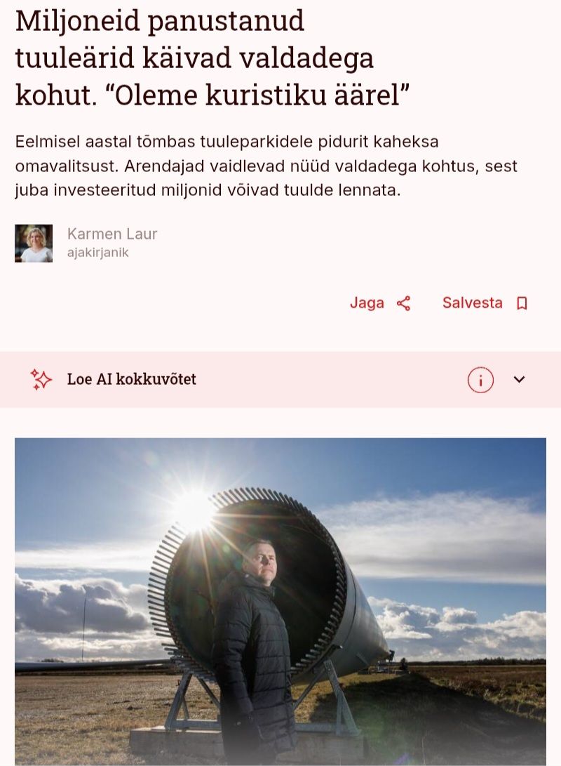 Tuulearendajad läksid rahva ning majandus- ja loodusseaduste vastu ning see ei saanudki hästi lõppeda – nüüd kirjutab meedia, et miljoneid “panustanud” tuuleärid on kuristiku äärel ja käivad valdadega kohut.