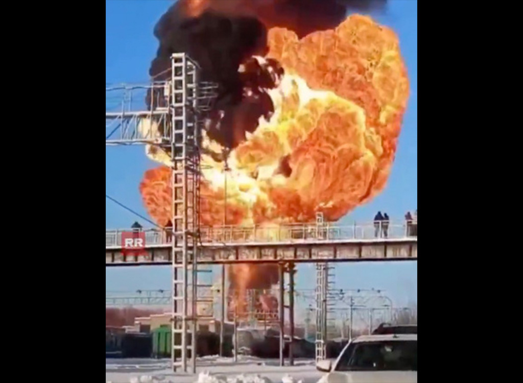 Massive explosion reported at Kochetovka-2 rail station in Russia’s Tambov region after a fuel train derailed, igniting multiple tanker cars.