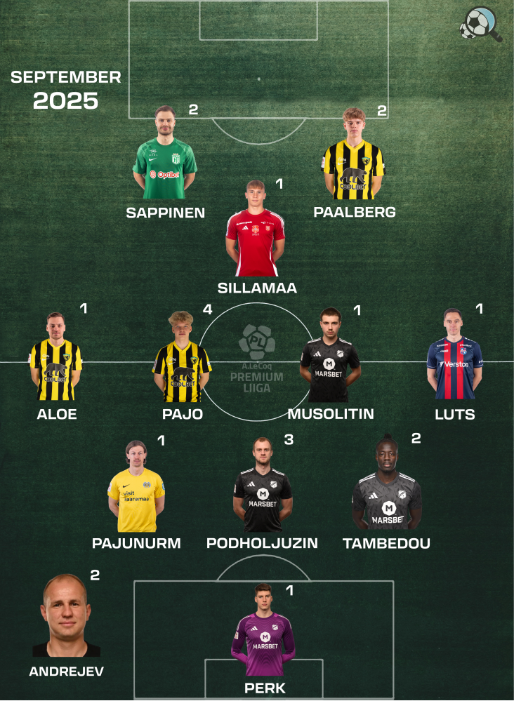 Soccernet.ee septembrikuu sümboolne koosseis: