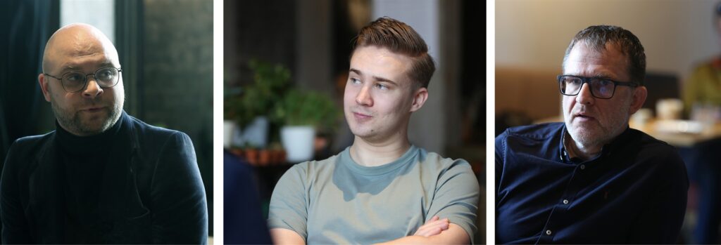 Tallinnfilmi alla kuuluvat kino Artis vedav Joonas Tartu, kino Sõpruse programmijuht Johannes Lõhmus ja Tartu Elektriteatri programmijuht Rasmus Rääk.