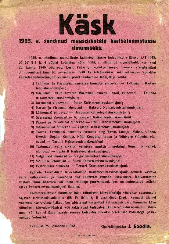 Varjamatu mobilisatsiooniga alustati Eestis 1943. aasta novembris, kui väkke võeti 1925. aastakäik ja detsembris anti samasugune korraldus 1924. aastakäigule. Kuid see polnud sugugi esimene mobilisatsioon. Varjatud mobilisatsiooniga alustati juba 1943. aasta kevadel Saksamaale tööteenistusse kutsumise egiidi all, kuid anti valida, kas astuda “vabatahtlikult” Eesti SS-leegioni või leiti mingi muu rakendus sõjatööstuses või sõjaväe abiteenistuses.