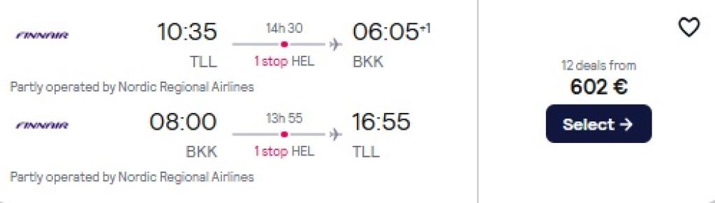 Finnair pakub hetkel kampaaniahinnaga lennupileteid Taisse. Edasi-tagasi lennupiletid Tallinnast või Tartust Bangkokki on saadaval alates 597€ eest.