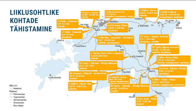 Kokku valiti välja 20 objekti: 16 ristmikku ja 4 teeületuskohta, millest umbes pooltel alandatakse ka lubatud sõidukiirust.