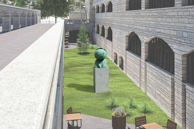 Riigi Kinnisvara koostöös Eesti Rahvusraamatukoguga viis läbi kunstikonkursi, et leida sobivaim kunstiteose ideelahendus rekonstrueeritud rhvusraamatukogu hoone sisehoovi. Žürii valis 36 kavandi seast võitjaks Jass Kaselaane ja Jenny Grönholmi skulptuuri “Monument raamatutele, mis on loetud kapsaks”.