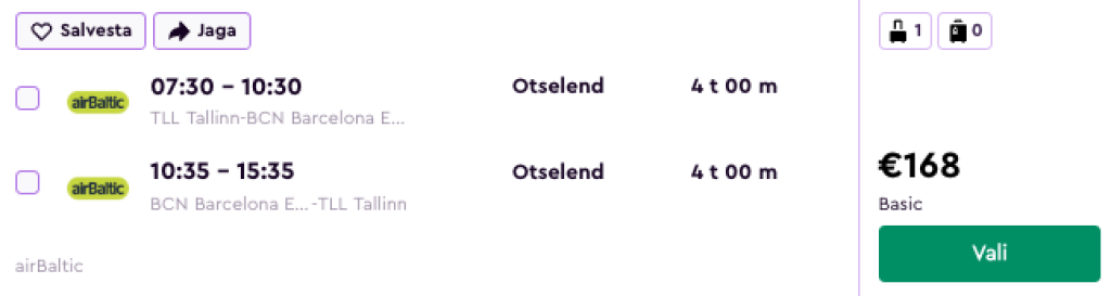 airBaltic pakub hetkel suurepärase hinnaga lennupileteid Hispaaniasse. Edasi-tagasi lennupiletid otselendudele Tallinnast Barcelonasse on saadaval alates 168€ eest.