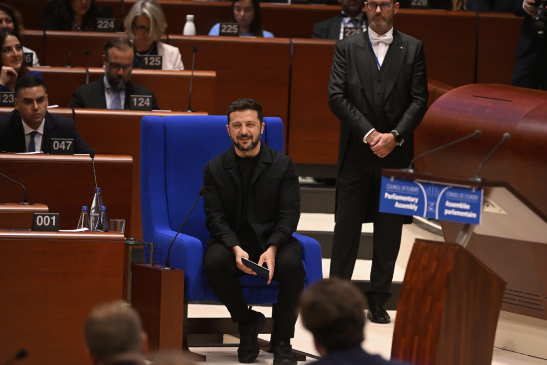 Volodõmõr Zelenskõi Euroopa Nõukogu istungitesaalis peale Ukraina tribunali asutamise lepingu sõlmimist. Starsbourg, 25.06.2025 Foto: Scanpix