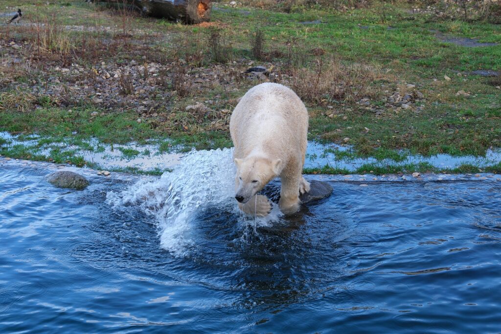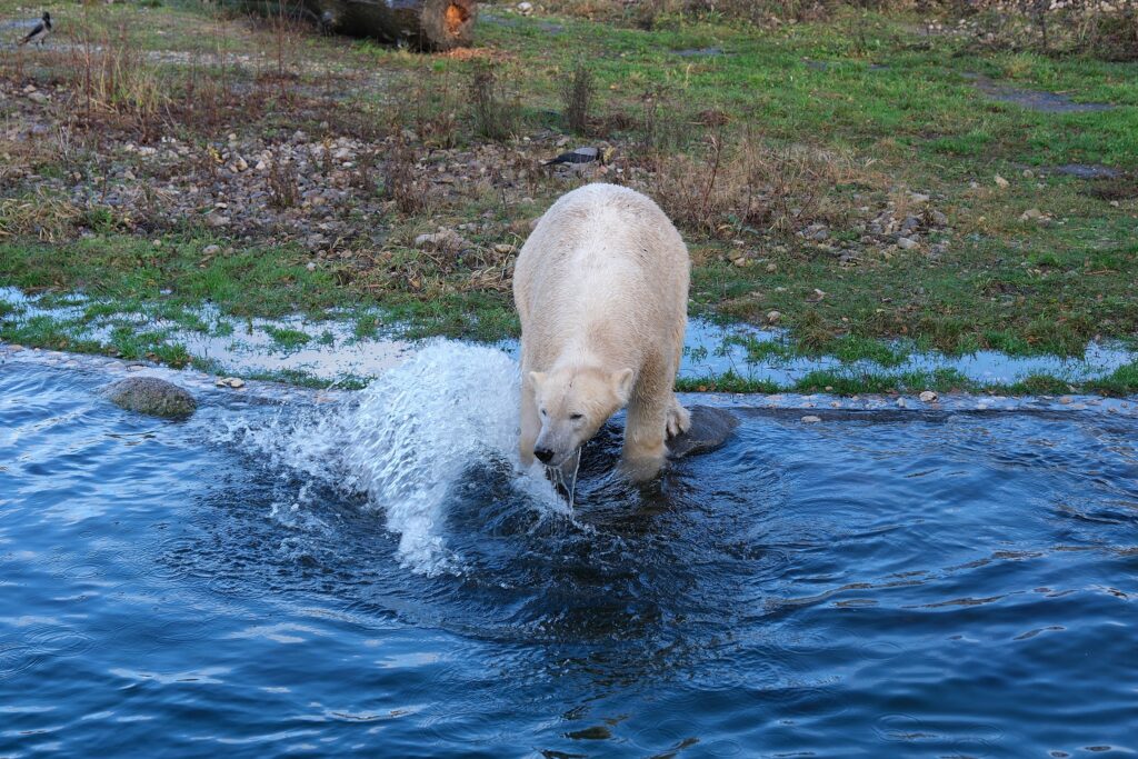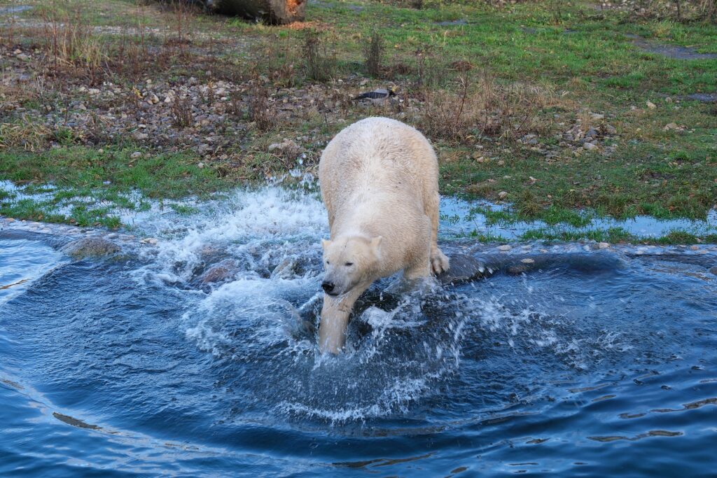 Sügisel ei taha jääkarud enam nii hea meelega vette minna kui suvel – ujumine on energiakulukas, talveks aga tuleb rasvavarusid hoida. Siiski tõid mõmmid talitaja poolt vette visatud sünnipäevamaiused – jäätiseks külmutatud kala- ja lihatükikesed koos puu- ja juurviljaga ning mahlased sealihakäntsakad – veest välja ja pistsid kinni.